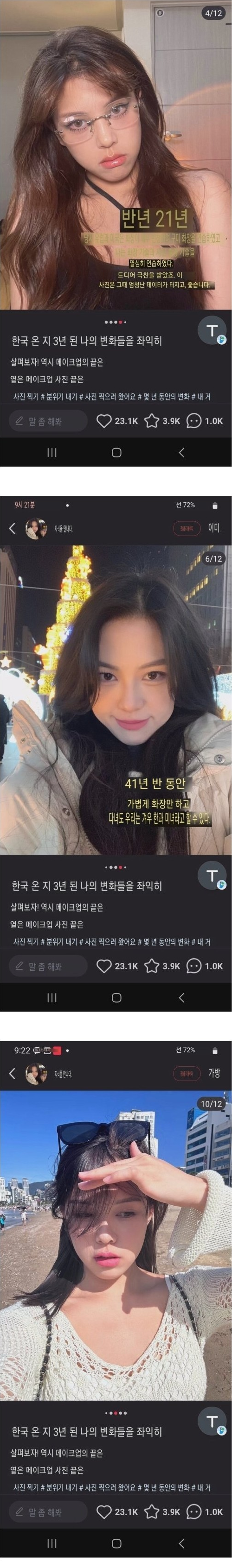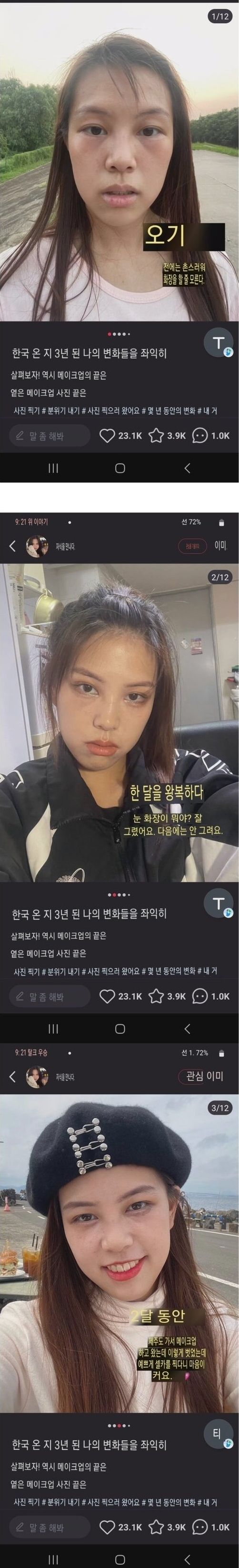 한국 거주 3년간 중국 미녀 외모 변화.JPG